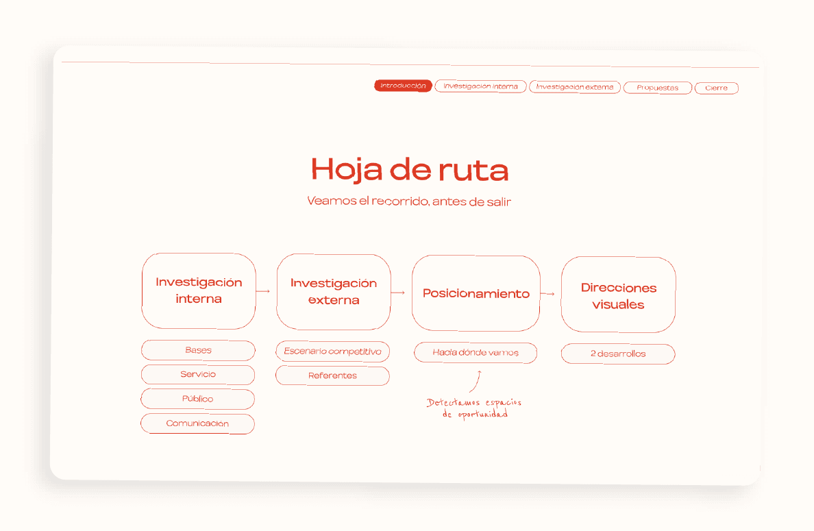 En Pizca trabajamos bajo una premisa clara: estrategia antes que estética. Nuestro proceso no empieza diseñando, sino ordenando ideas, definiendo posicionamiento y bajando a tierra objetivos concretos. Recién después construimos la identidad visual.